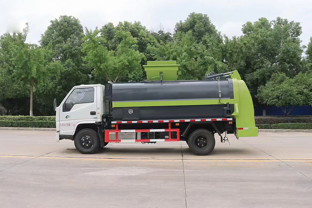 泔水裝載由垃圾桶提升系統(tǒng)完成,該系統(tǒng)具有垃圾桶鎖止結(jié)構(gòu),裝卸安全可靠。垃圾桶與垃圾投入口銜接好,保證裝卸過程中餐廚垃圾不溢撒、不遺漏。垃圾投入口與推板之間有足夠距離,推板與罐體內(nèi)表面設(shè)有密封裝置,避免餐廚垃圾投入過程及分離過程中溢到推板后方。 液壓系統(tǒng)由泵、液壓閥和順序閥以及各種功能的液壓油缸、高低壓管路組成。關(guān)鍵部件可選用原裝進(jìn)口,保證產(chǎn)品工作可靠、安全。