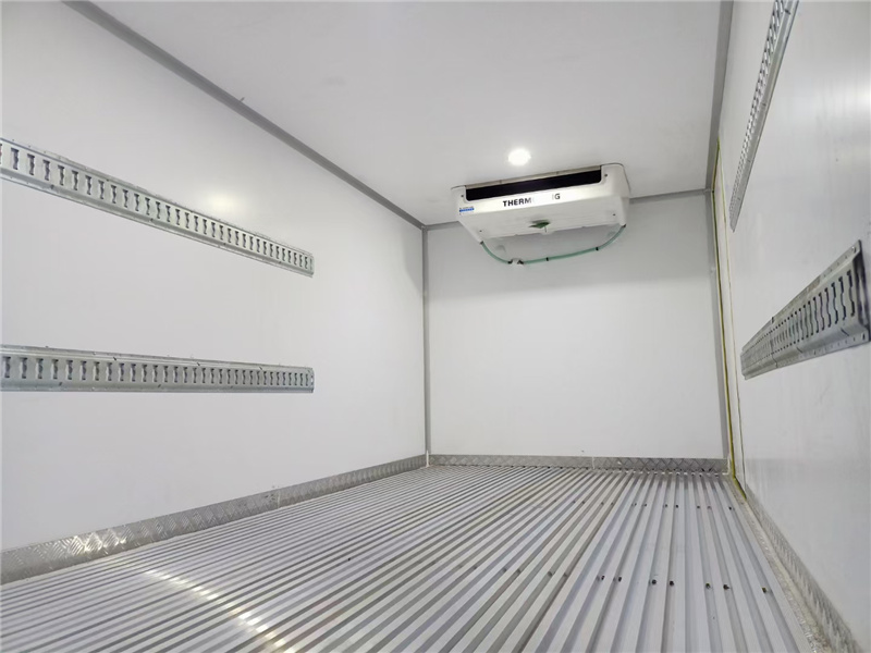 (2)廂板材質:內外壁板選用國內優質玻璃鋼(不吸光、隔熱性好、硬度強、抗氧化);中間保溫層為XPS擠塑聚笨板;廂體厚度8CM。地板采用鋁花紋板,門邊條采用迷宮式橡膠密封條。